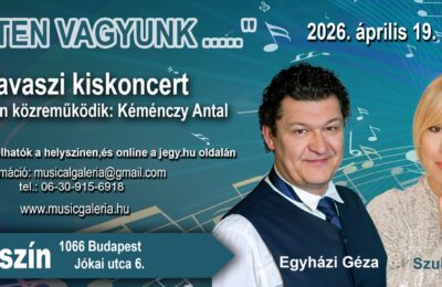 Szulák Andrea és Egyházi Géza műsora Zongorán közreműködik: Kéménczy Antal 2026. április 19. 14 h https://www.jegy.hu/program/ketten-vagyunk-tavaszi-kiskoncert-189315